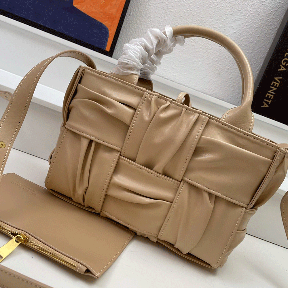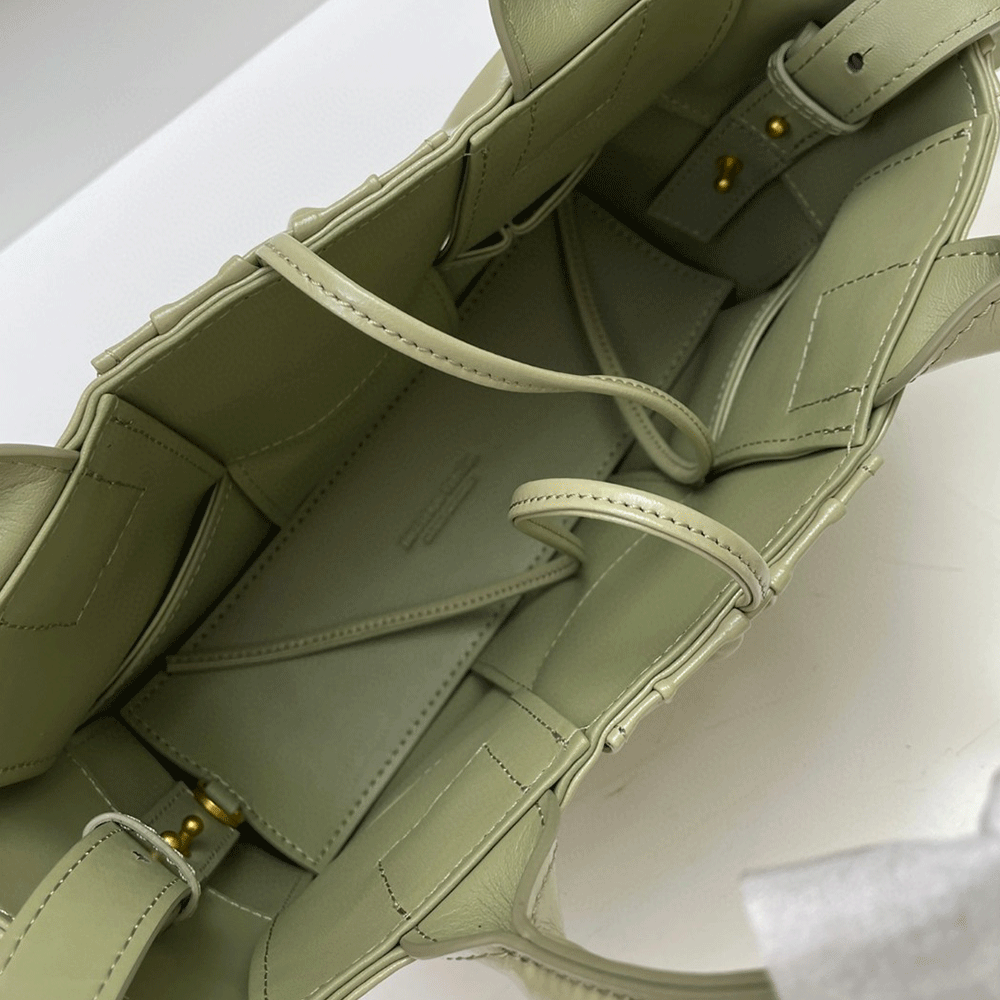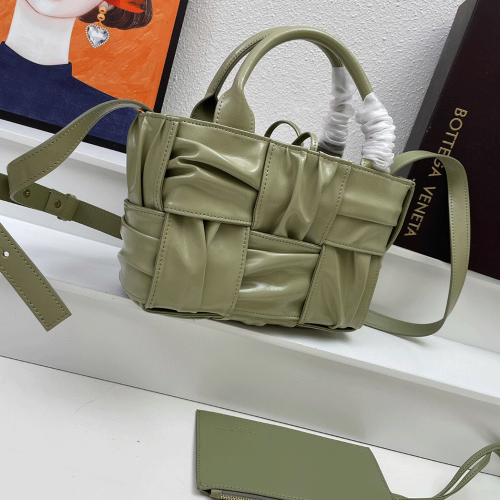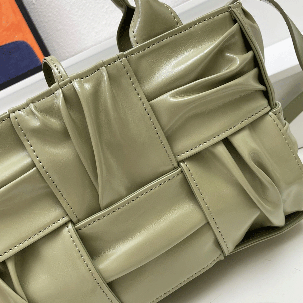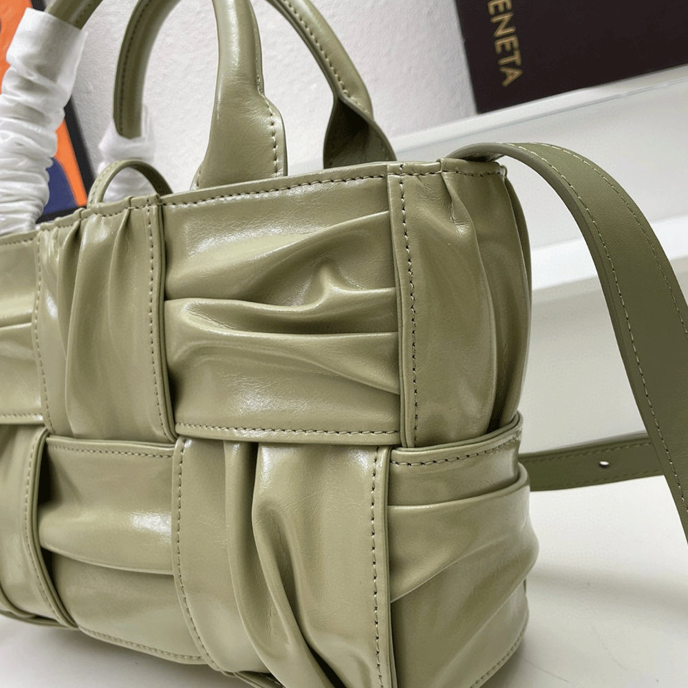 Tote bag in polished cowhide leather with a thin softIntreccio weave with detachable strap -