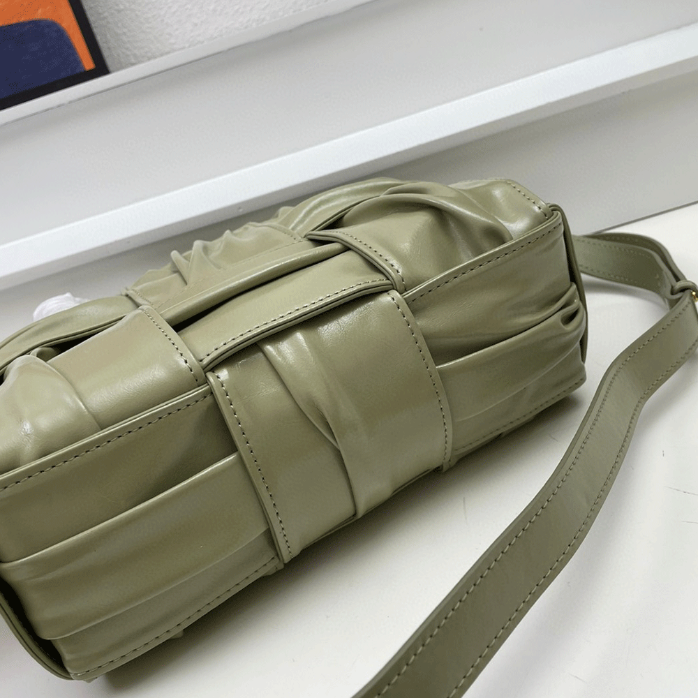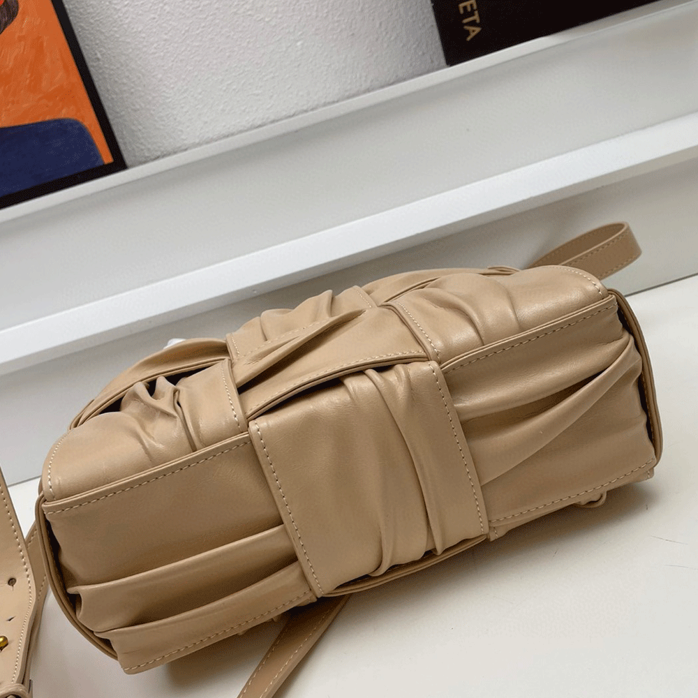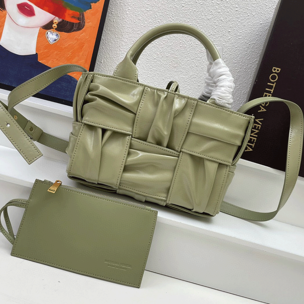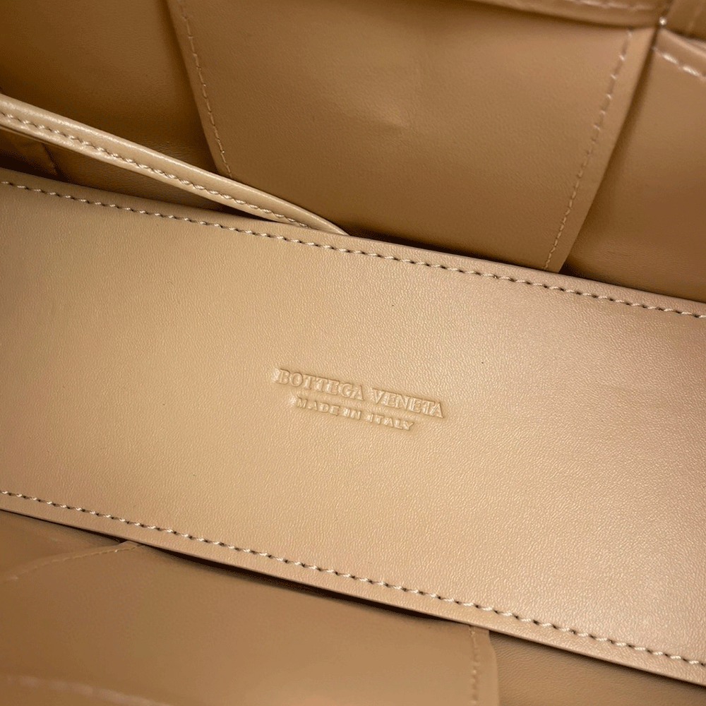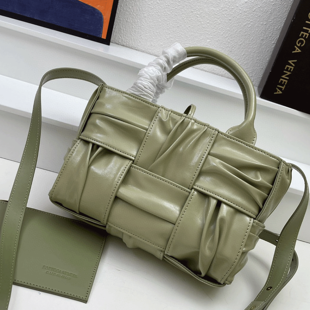 Tote bag in polished cowhide leather with a thin softIntreccio weave with detachable strap -