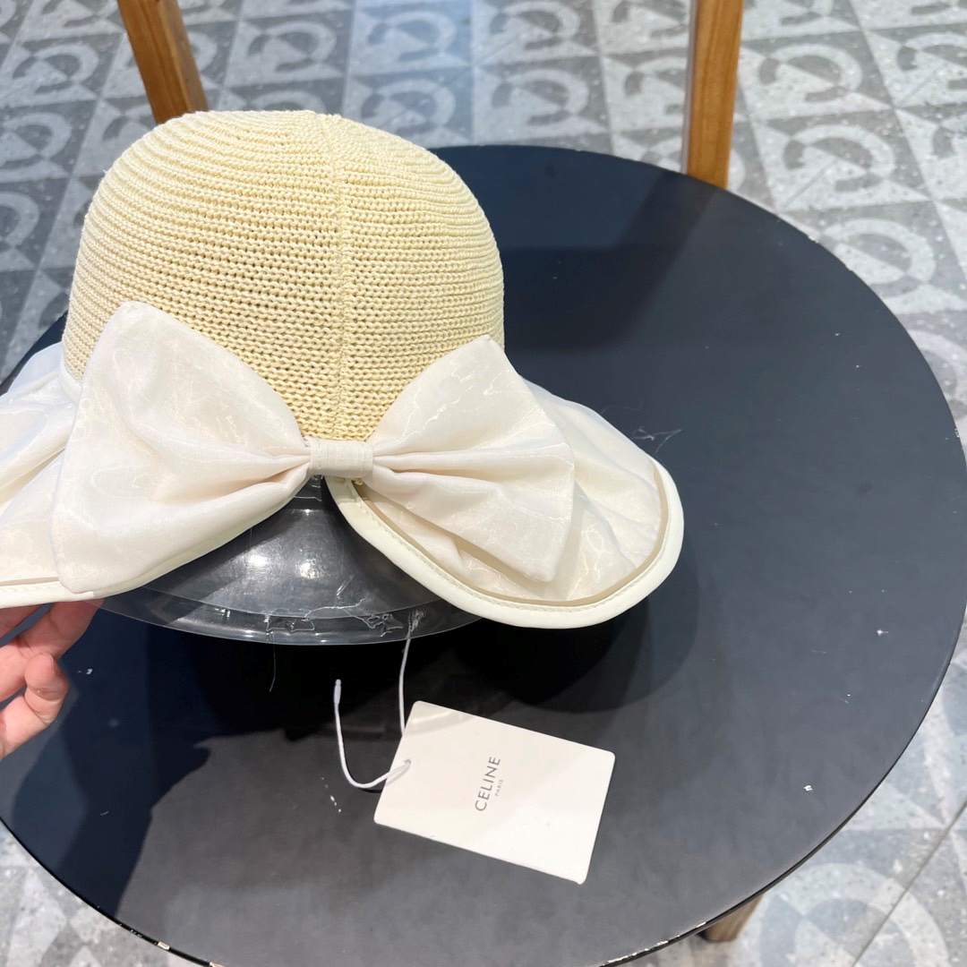 Ceiline Straw Sun Hat With Bow Split Back Sunhat