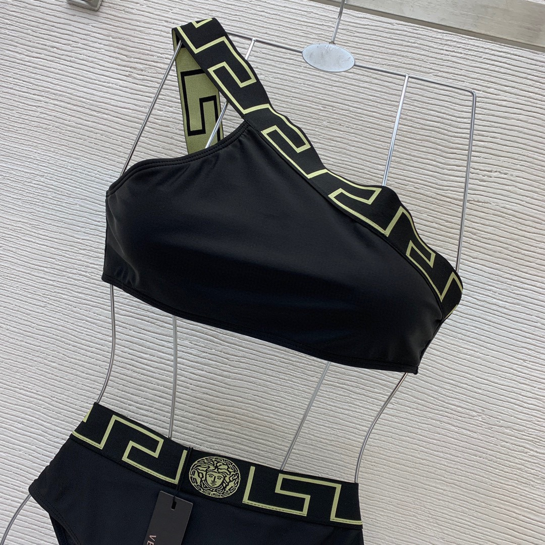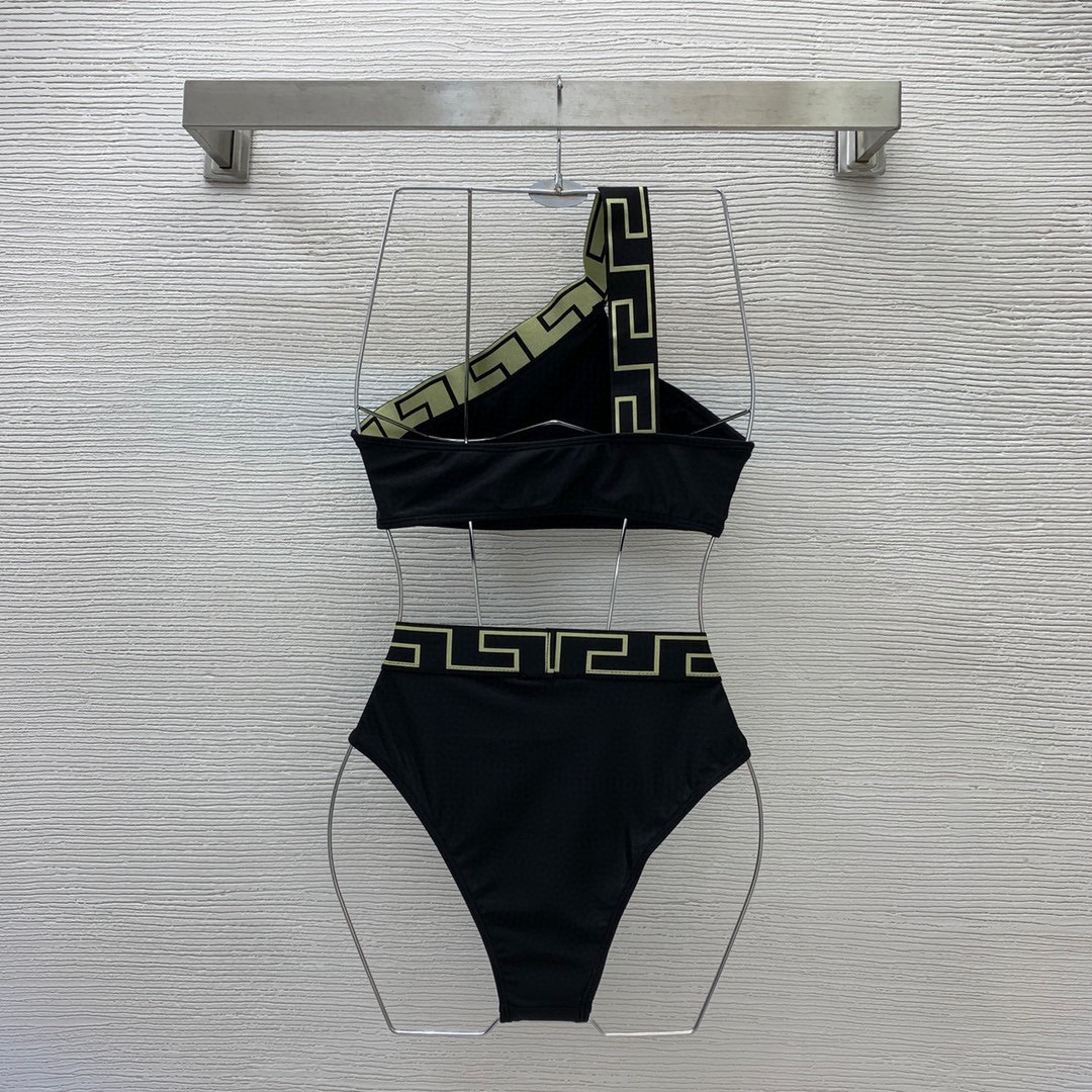 Versace Split Swimsuit With Diagonal Straps Swimwear